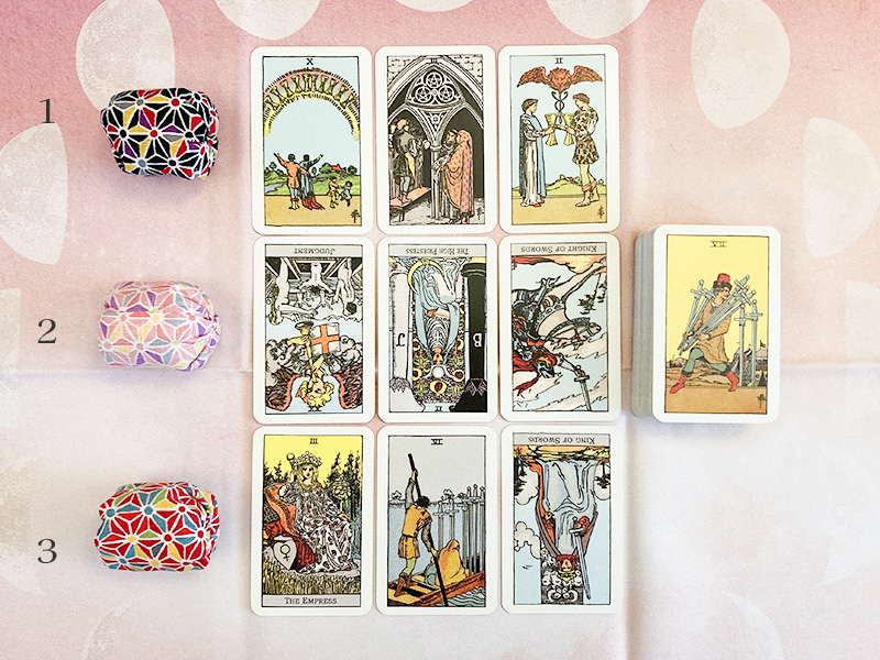 カードの裏側に「ソードの7」が出ていますので、今まで一生懸命積み上げてきた物を突然奪われてしまったり、壊されてしまったりされた方が多いように見えます。