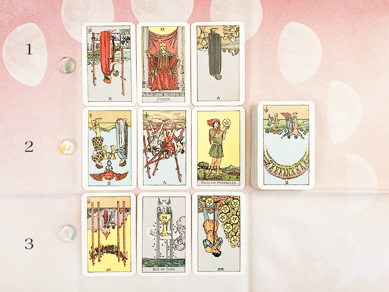真ん中に大アルカナの「正義」が出ているので、自分ではどうしようもない力が働いていて、それに従わなければならない方も多いのかもしれません。